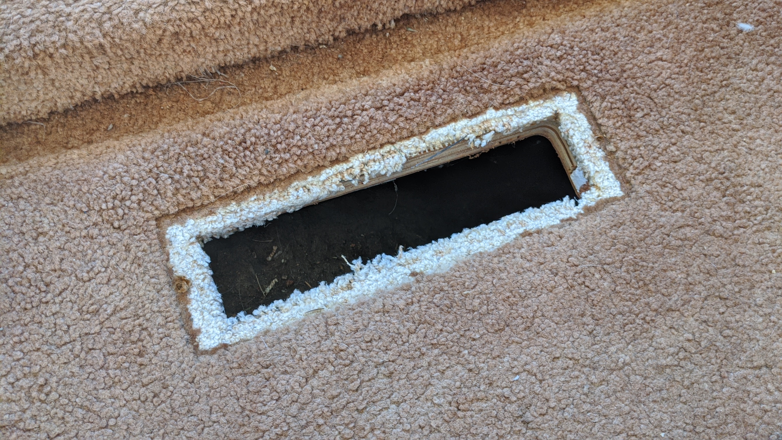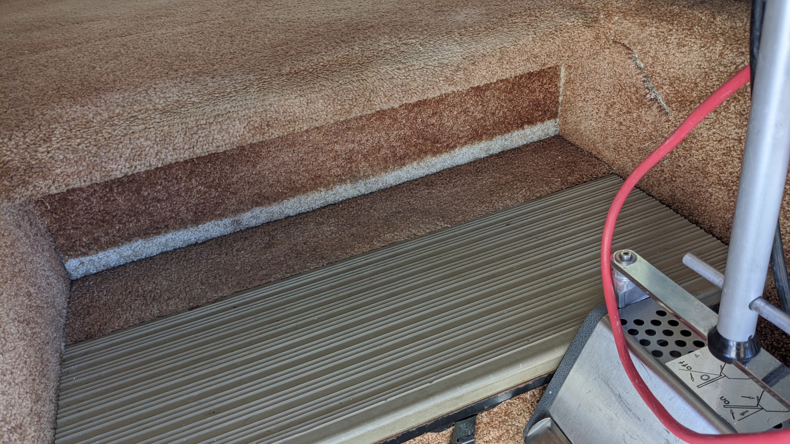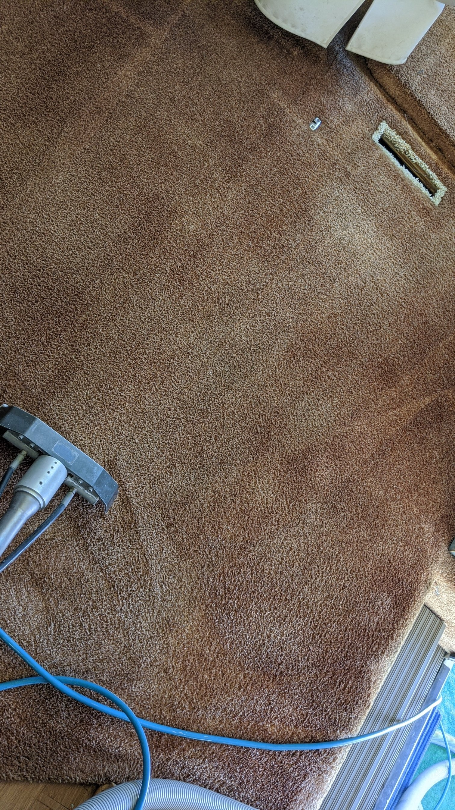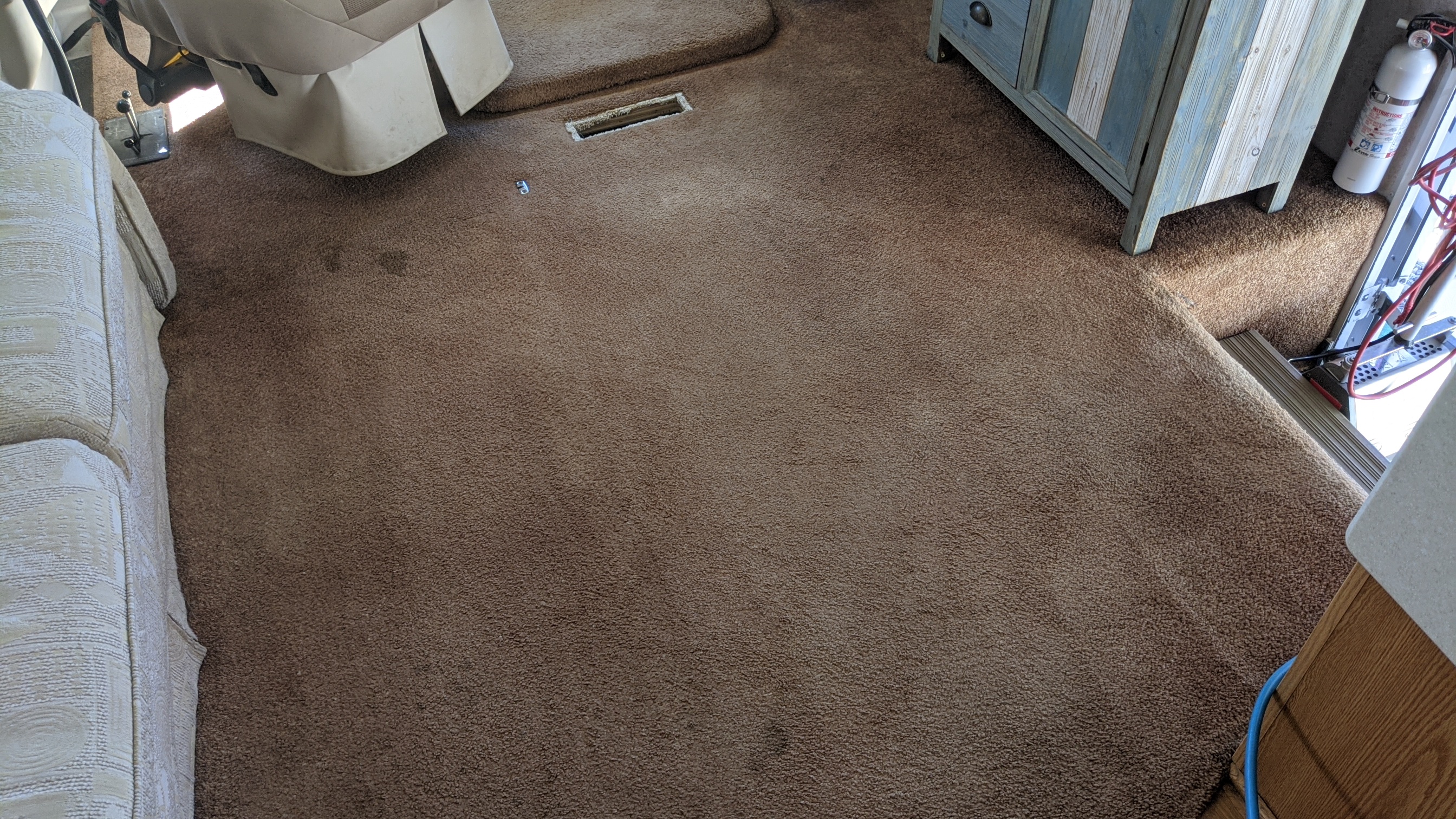 This dick head was pretty damn lazy didn't even take the register covers off on this motorhome a carpet I was pretty splotchy so I pre-sprayed it with Prochem AFR and wrenched as well and didn't cause any damage but I was worried about pulling some of it off
