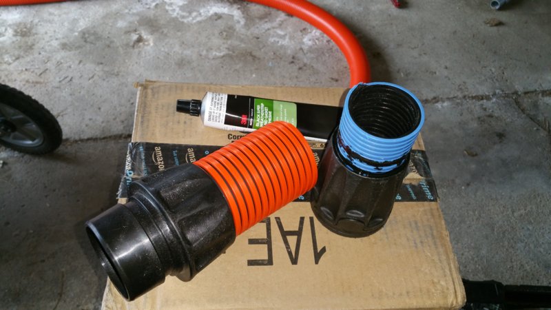 use the polyurethane window or roof caulking. its black and drys tough. once together it won't come apart. its almost as strong as rhino lining.Didn't work for this adapter I cobbled to add 2.5" to the end of my hose reel.