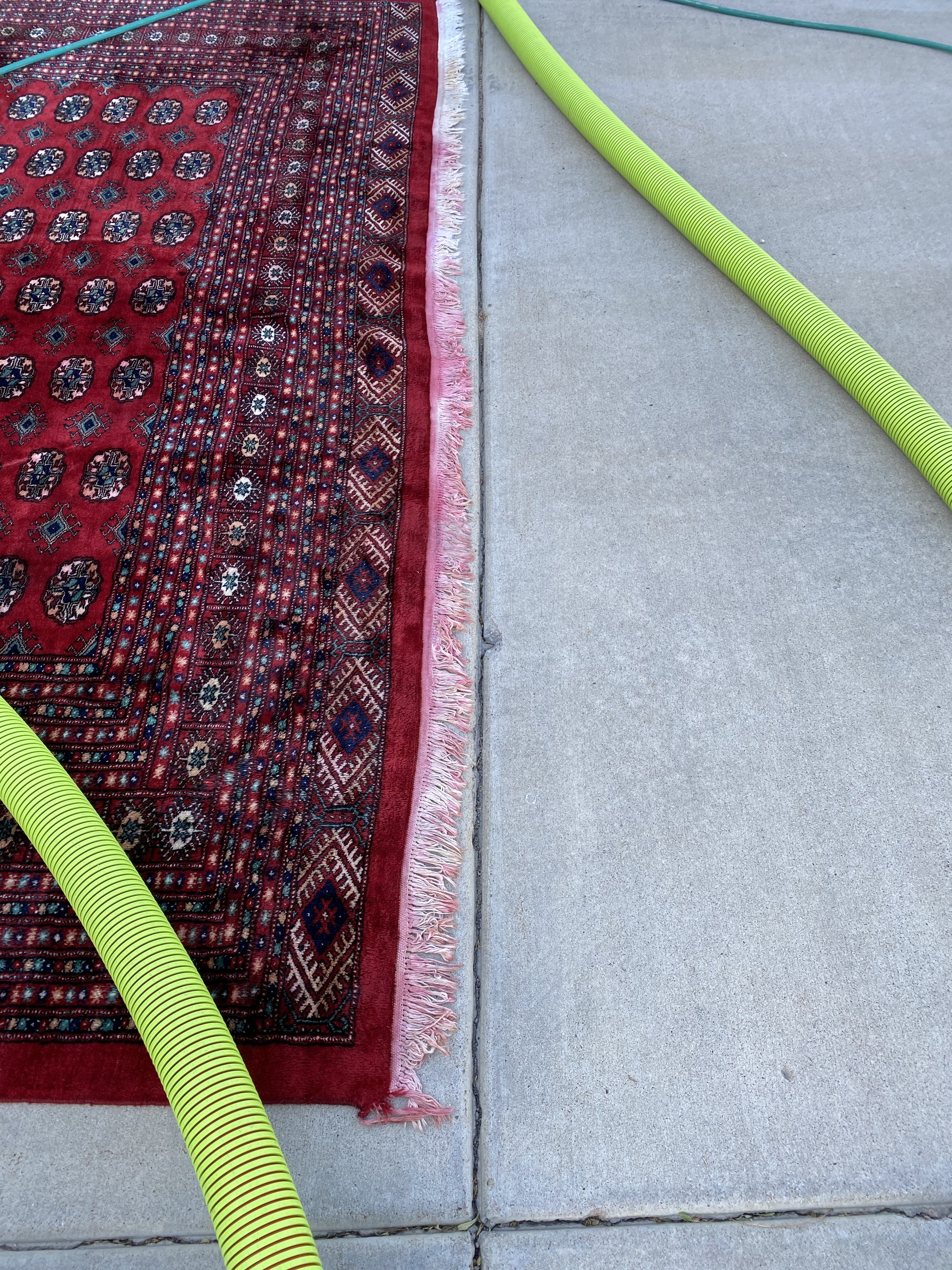 Rug dyes may move (bleed) during the cleaning process due to long-term exposure to moisture, animal urine, and high pH or pH buffered cleaning products.