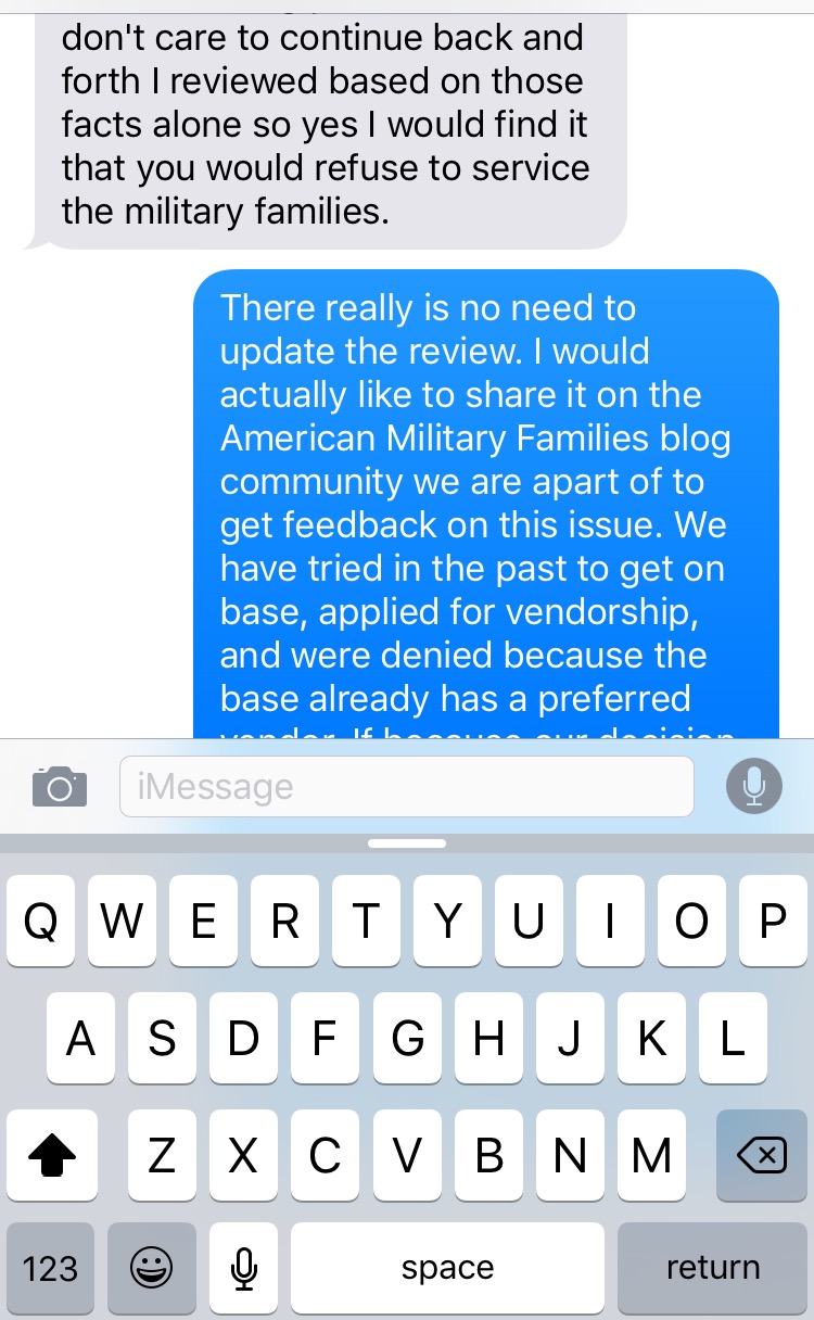 Like really?? Your gonna write that review and then text us. End of story. Done with her. Everything had to hold me back to not say something stupid.