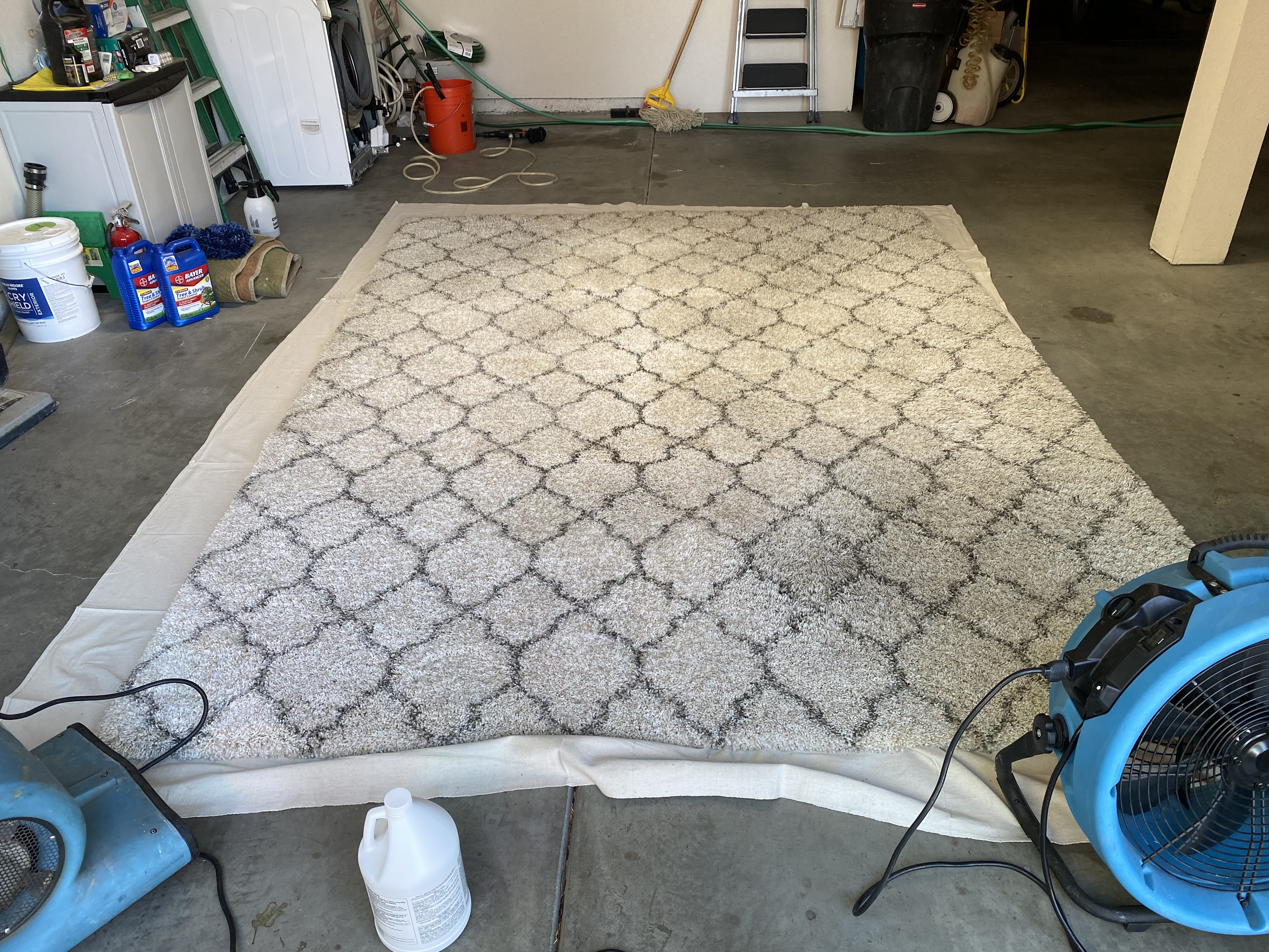 Scrub w/ a Cimex, tank feed ds2, then extract w/ 360i BH....Well my crappy rug browning went away. But the dark areas are wear. These poly rugs really are shit.