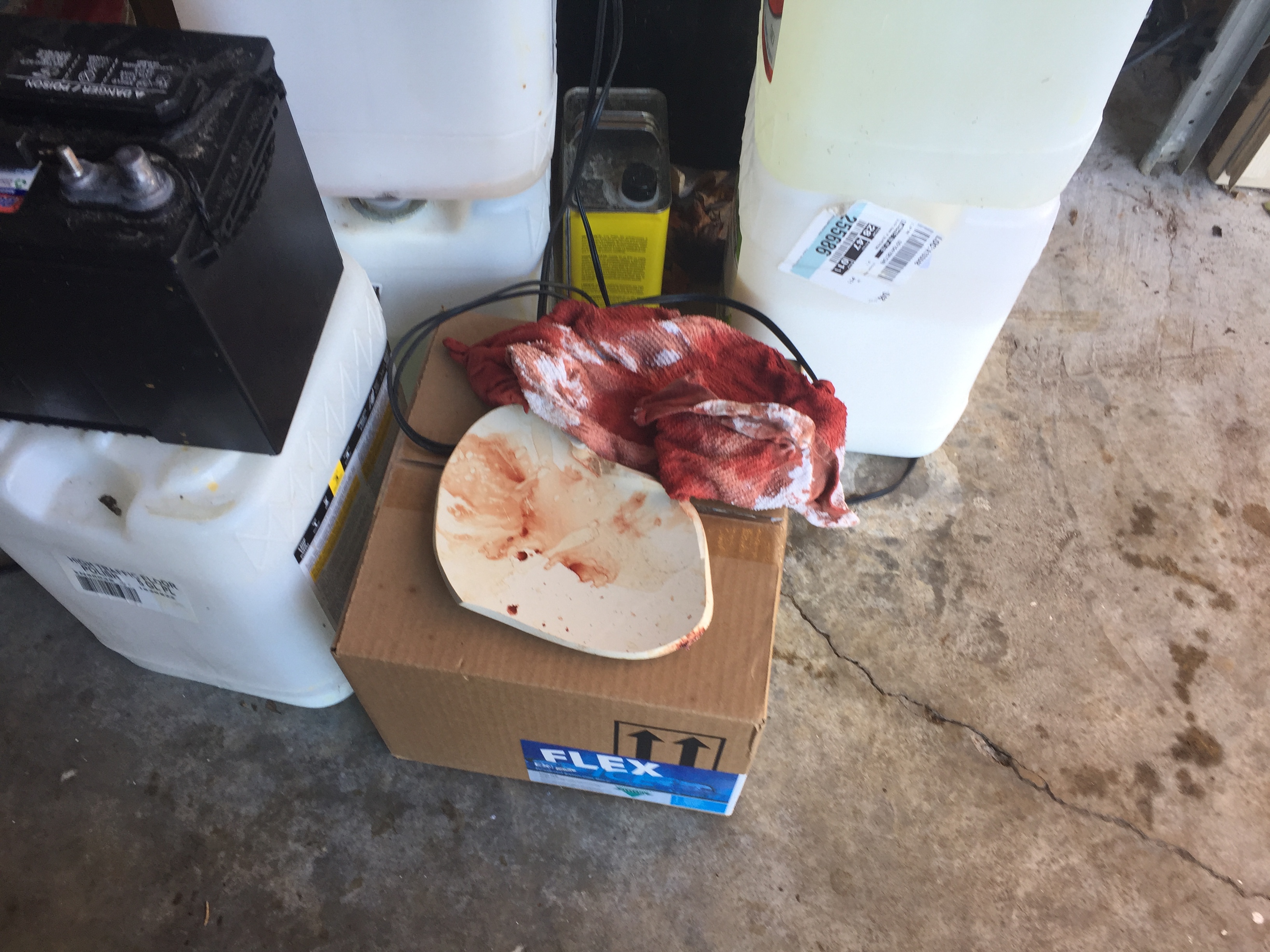 Monday night lost a tranny, Wednesday afternoon severed an artery and some tendons in the wrist on a porcelain sink. Wish me better luck