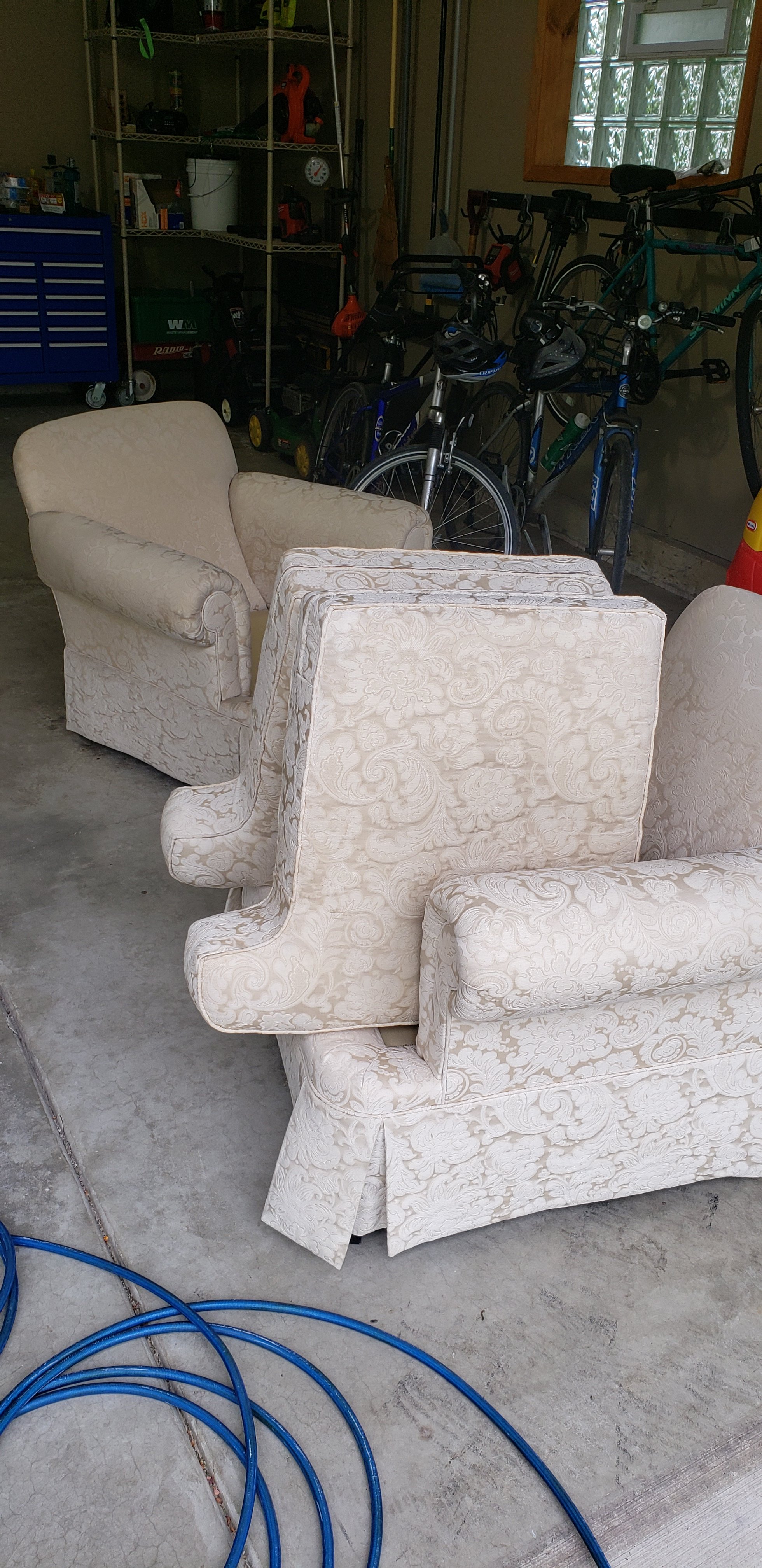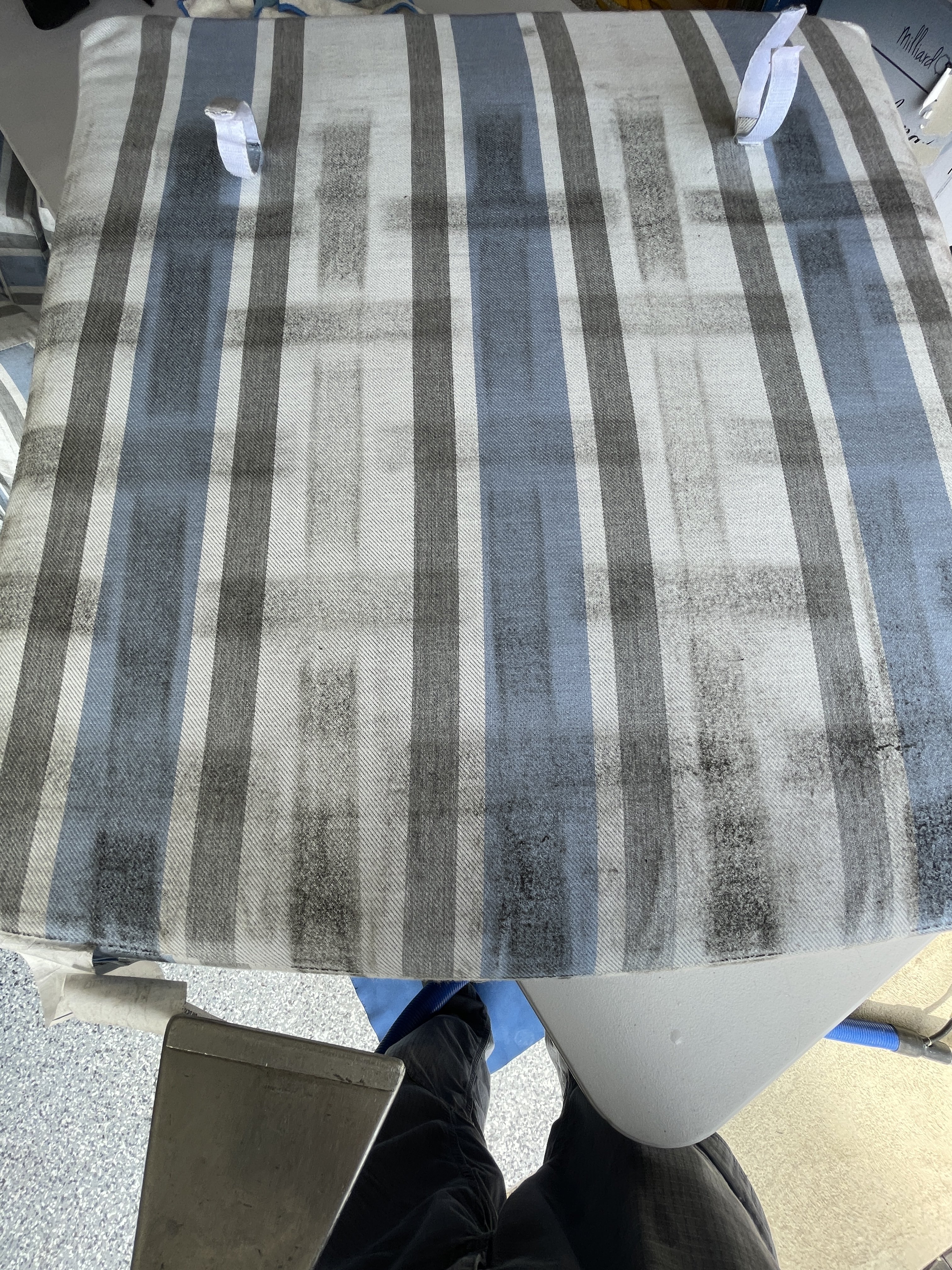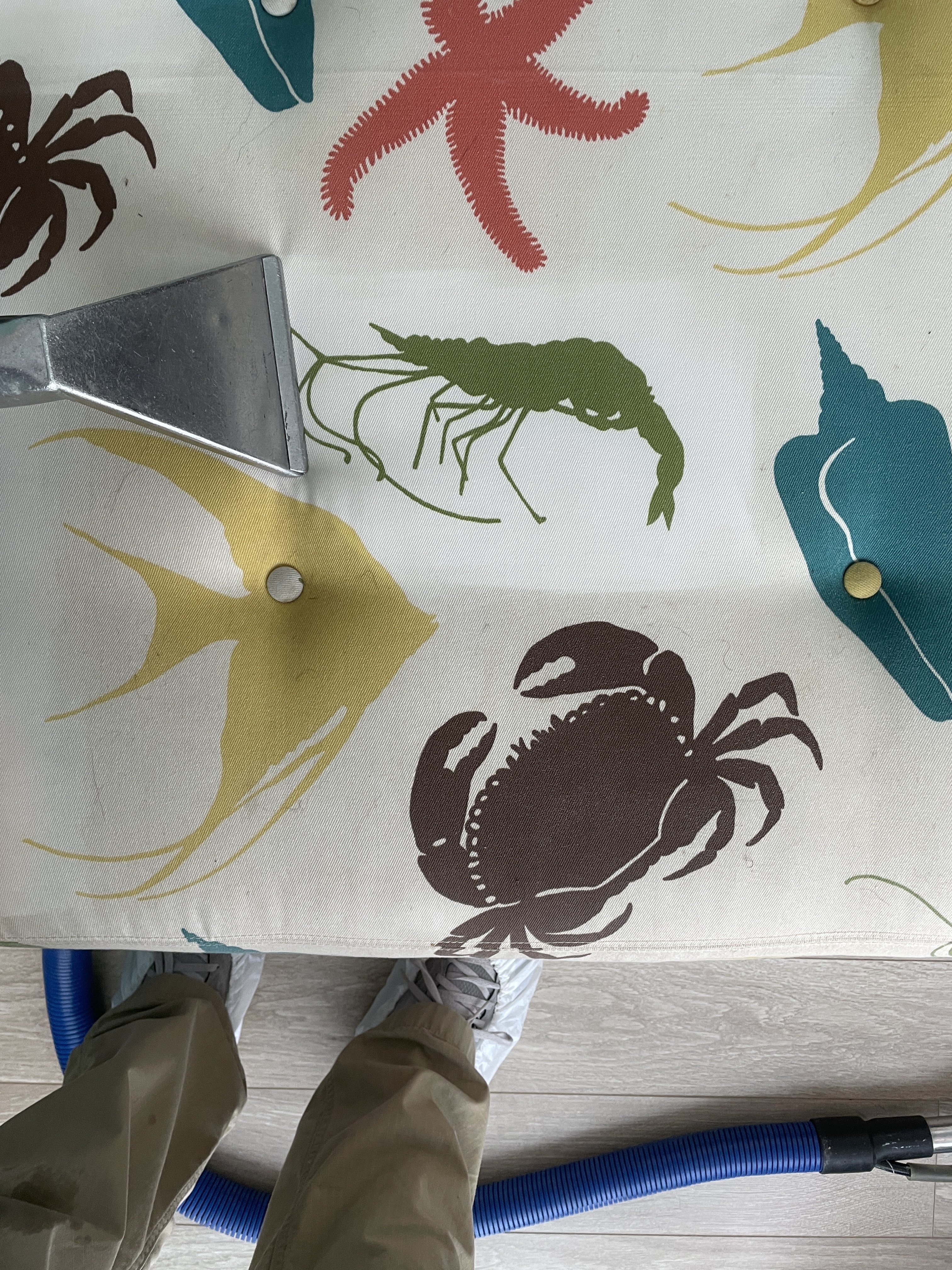 I like doing furniture. I carry a small picnic table with adjustable legs. A slow and steady pace suits meFirst job, sectional. Was 30 minutes into cleaning the 2 pieces with all the cushions off. I flipped the one, did my vac and cleaned. Next flipped the other piece. Vacuumed pretty hard, a lot of hair.