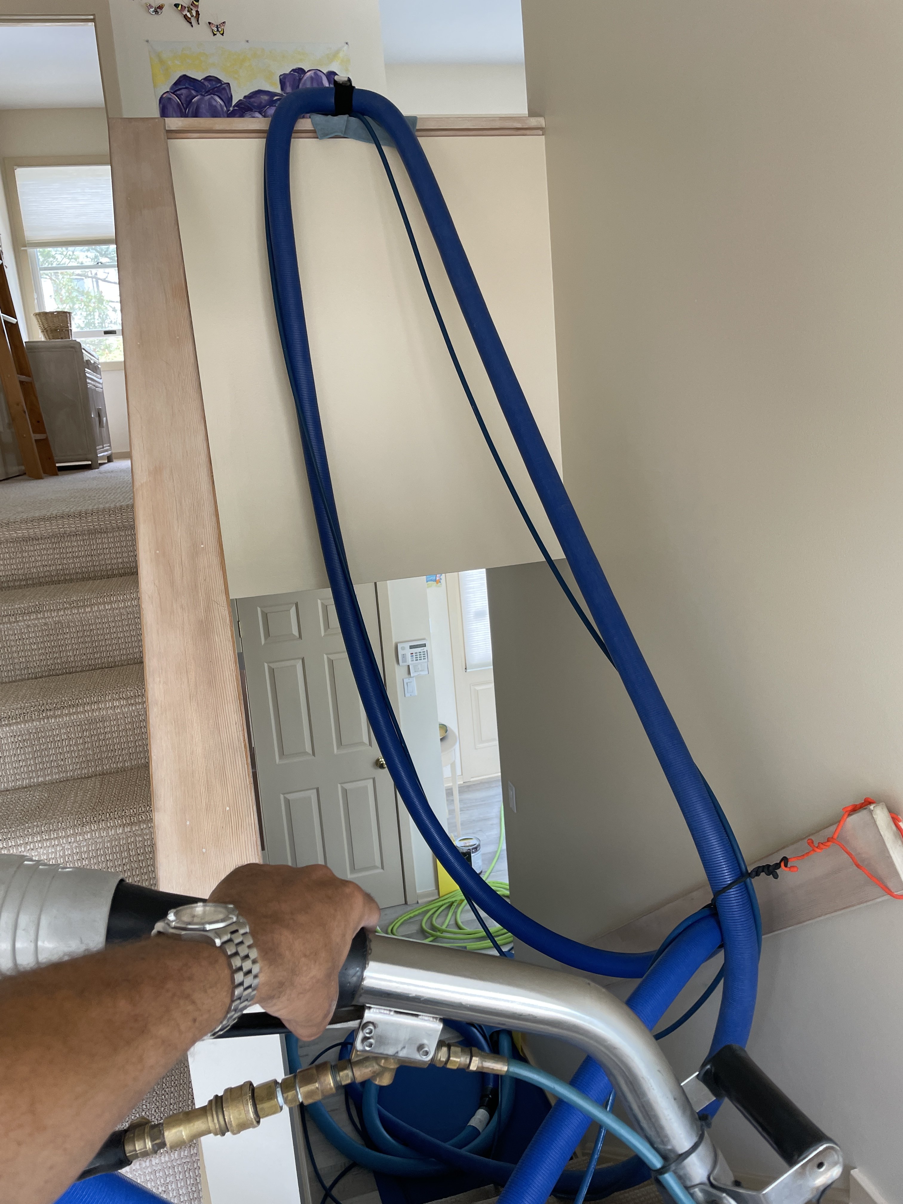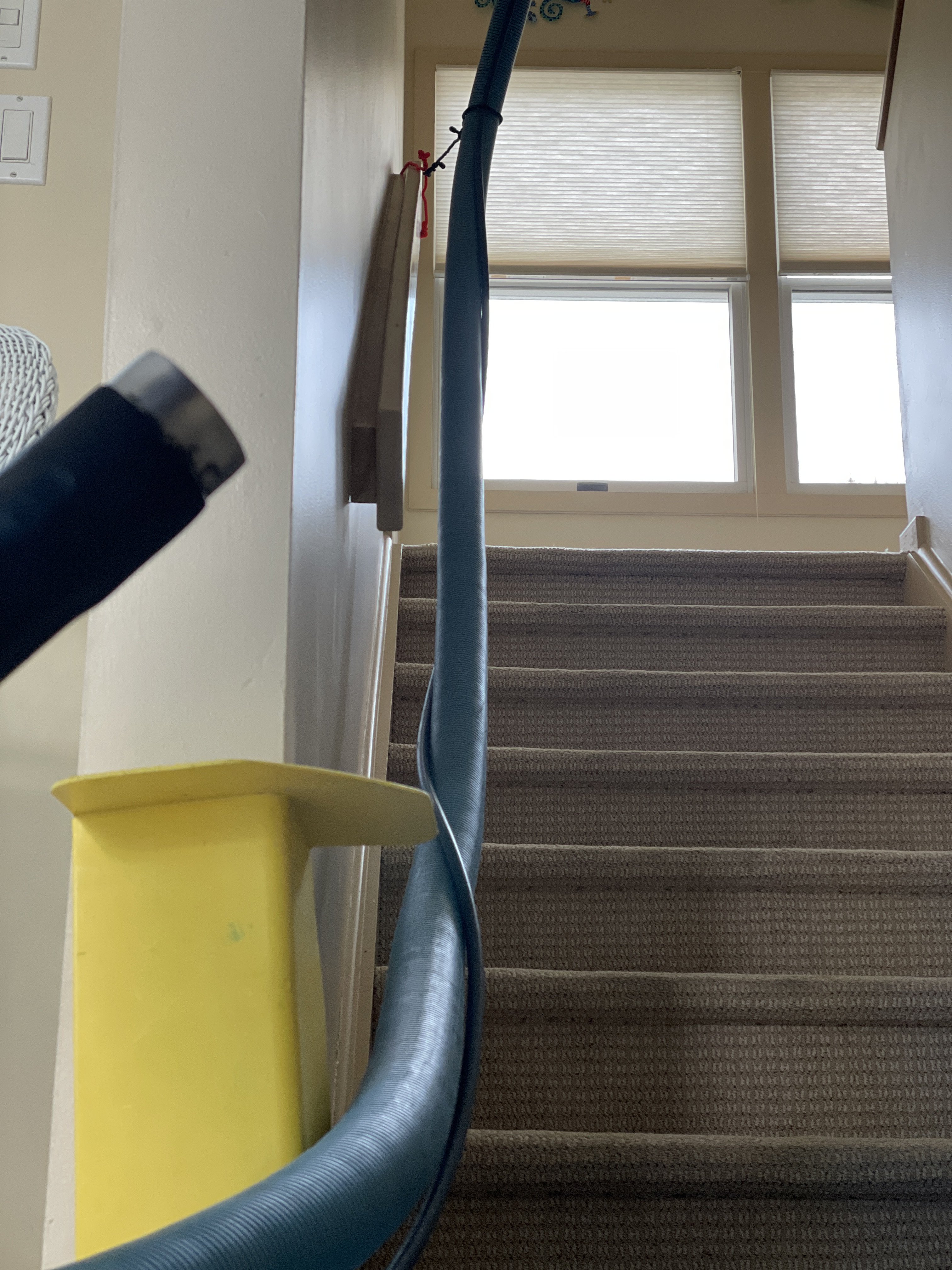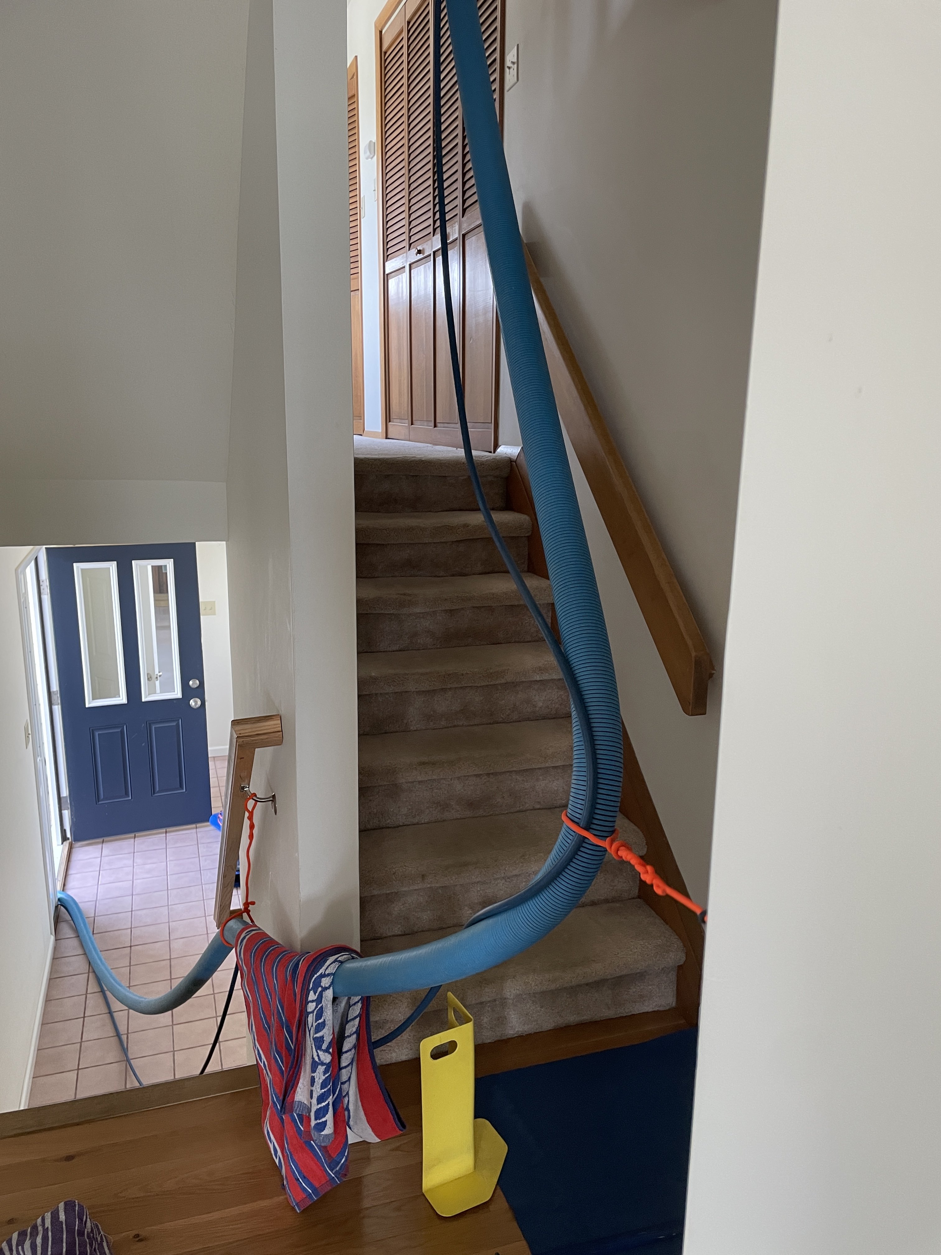 It kinda does amaze me. After so many years of a hook and a towel guarding the vinyl, this is positive moment of truth working.Never seen hose going up a staircase like that before. You’re amazing.