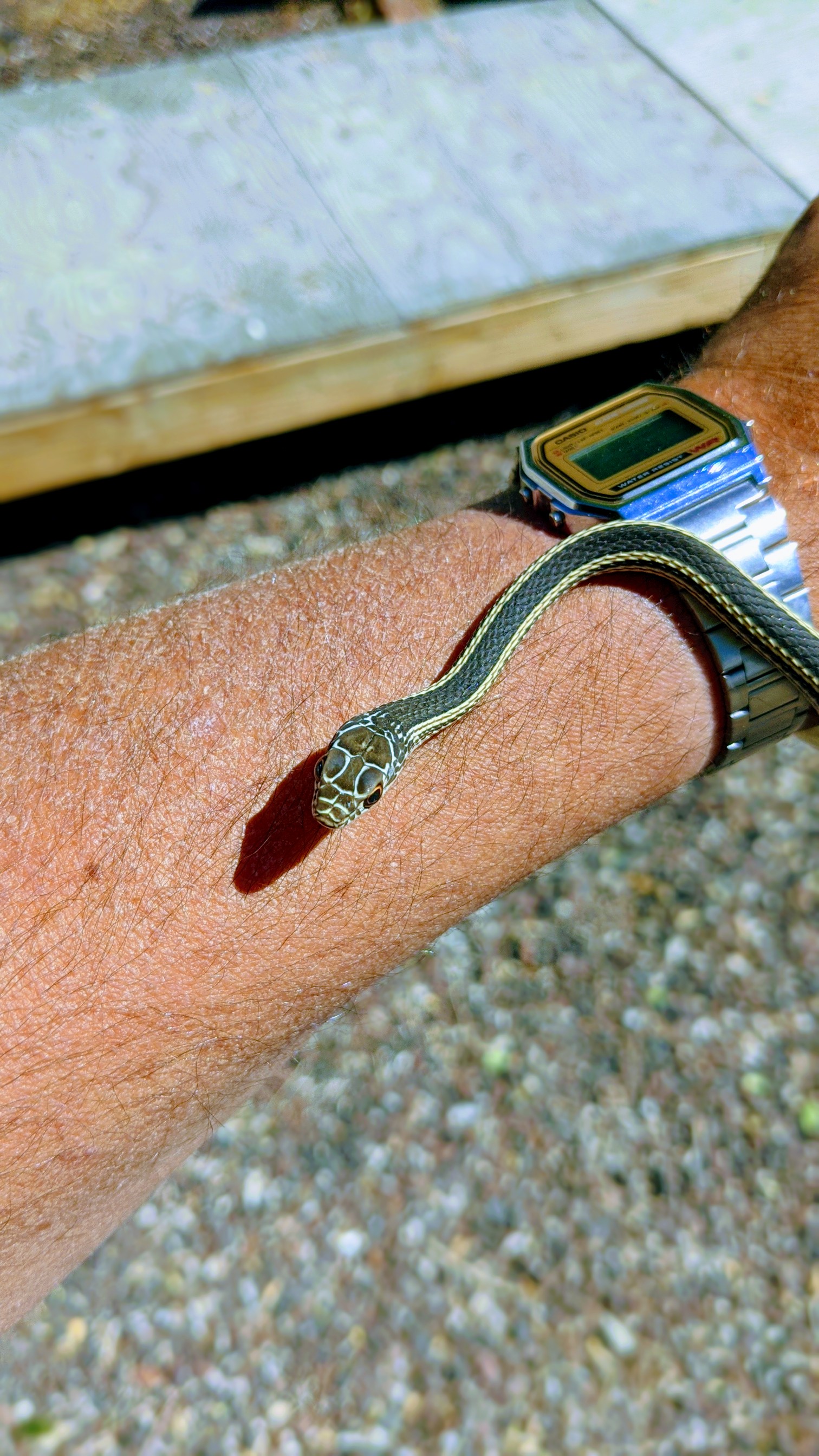 Cool photo...This little striped whipper was bailing out of the hills looking for safe refugee when he stopped to ask me what time it was..