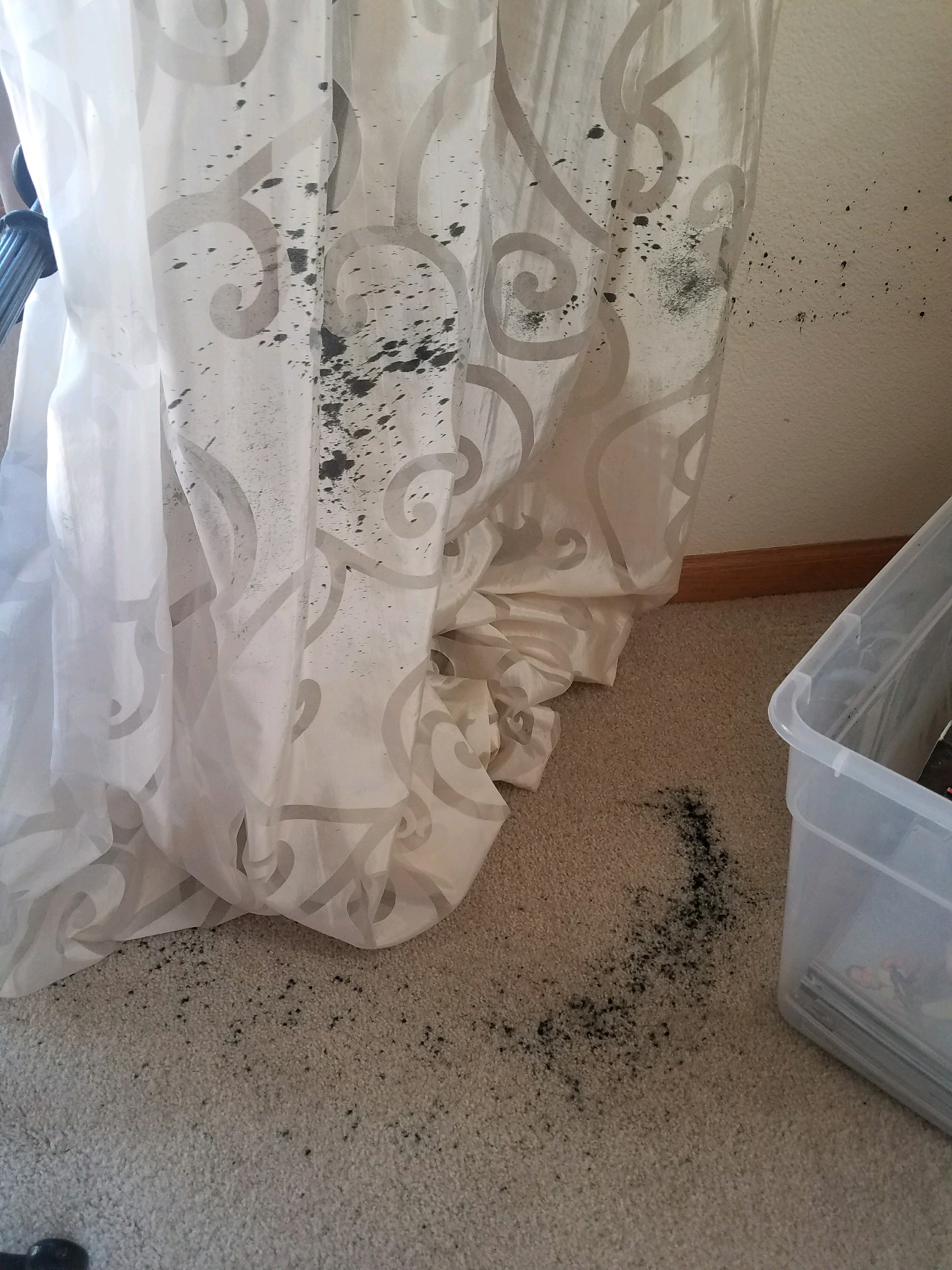 If you are asking about the draperies I agree. If they are synthetic, he can wash them. If they have natural fiber content, they might shrink when wet cleaned, which will be needed to remove that damage