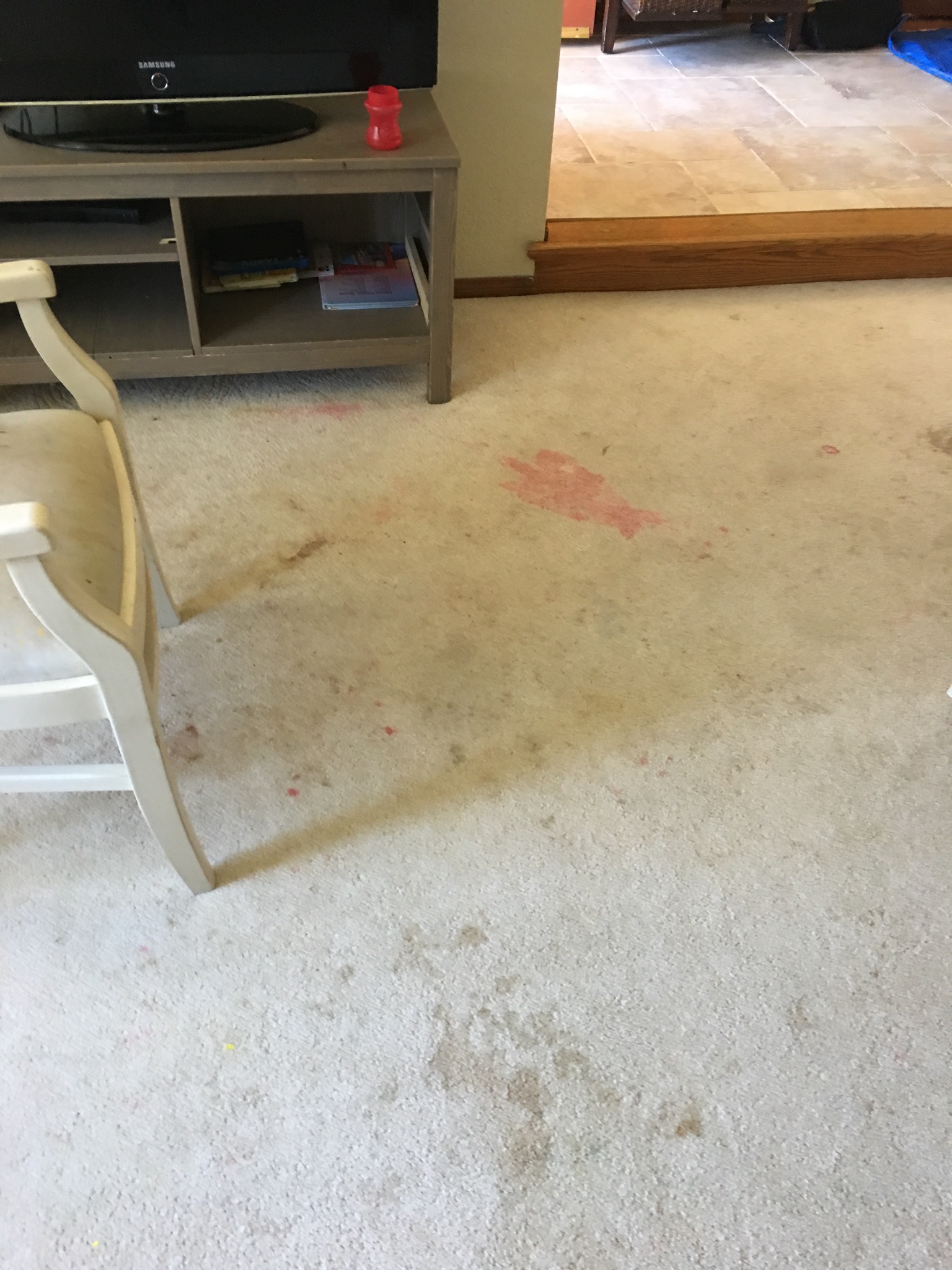 His wife is also on medication and some meds got on the carpet creating an orange spot like drips.