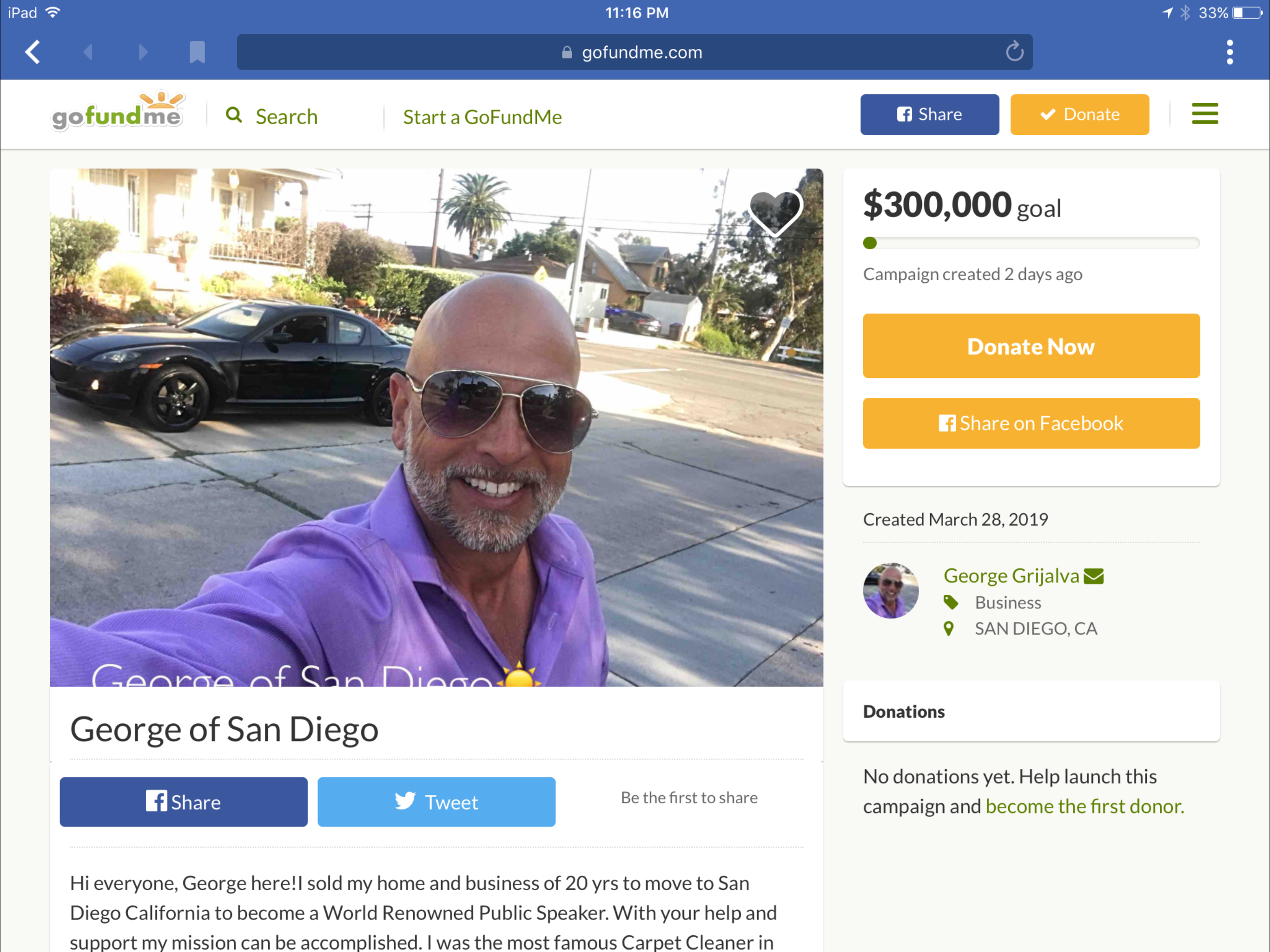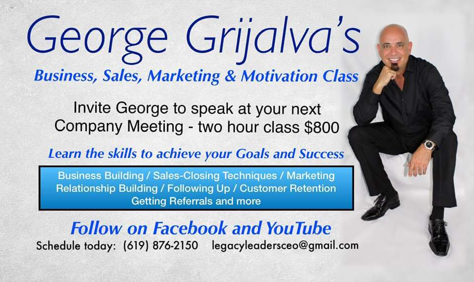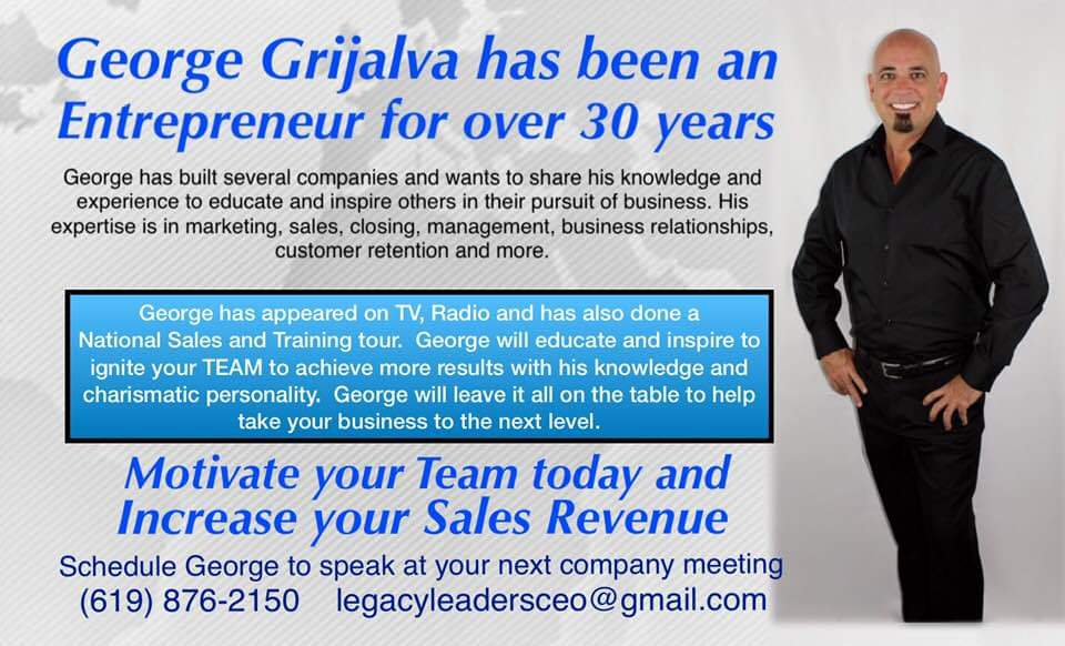 Hi everyone, George here!I sold my home and business of 20 yrs to move to San Diego California to become a World Renowned Public Speaker. With your help and support my mission can be accomplished. I was the most famous Carpet Cleaner in the World for 12 months. I built an Empire by the grace of God and our business went from a new start up company. Competing with over 3,500 carpet cleaners already established in the NW. Checkmate Carpet & Upholstery Cleaning in 12 months exploded to the top 1% of carpet cleaning companies. I was breaking records left and right. TV, Radio and a National Sales Seminar as a paid key note speaker. This is to my fans and supporters in the beginning who said it was my calling. Here I am, now you can help support the mission. For any one who supports my dream to touch and change people’s lives. With a donation of $50 I will personally mail a signed original copy of one of my CarpetCleaning************.com DVDs as a keep sake and a collectors item, you can frame it and hang it proudly on the wall.Sincerely,George Grijalva619-876-2150