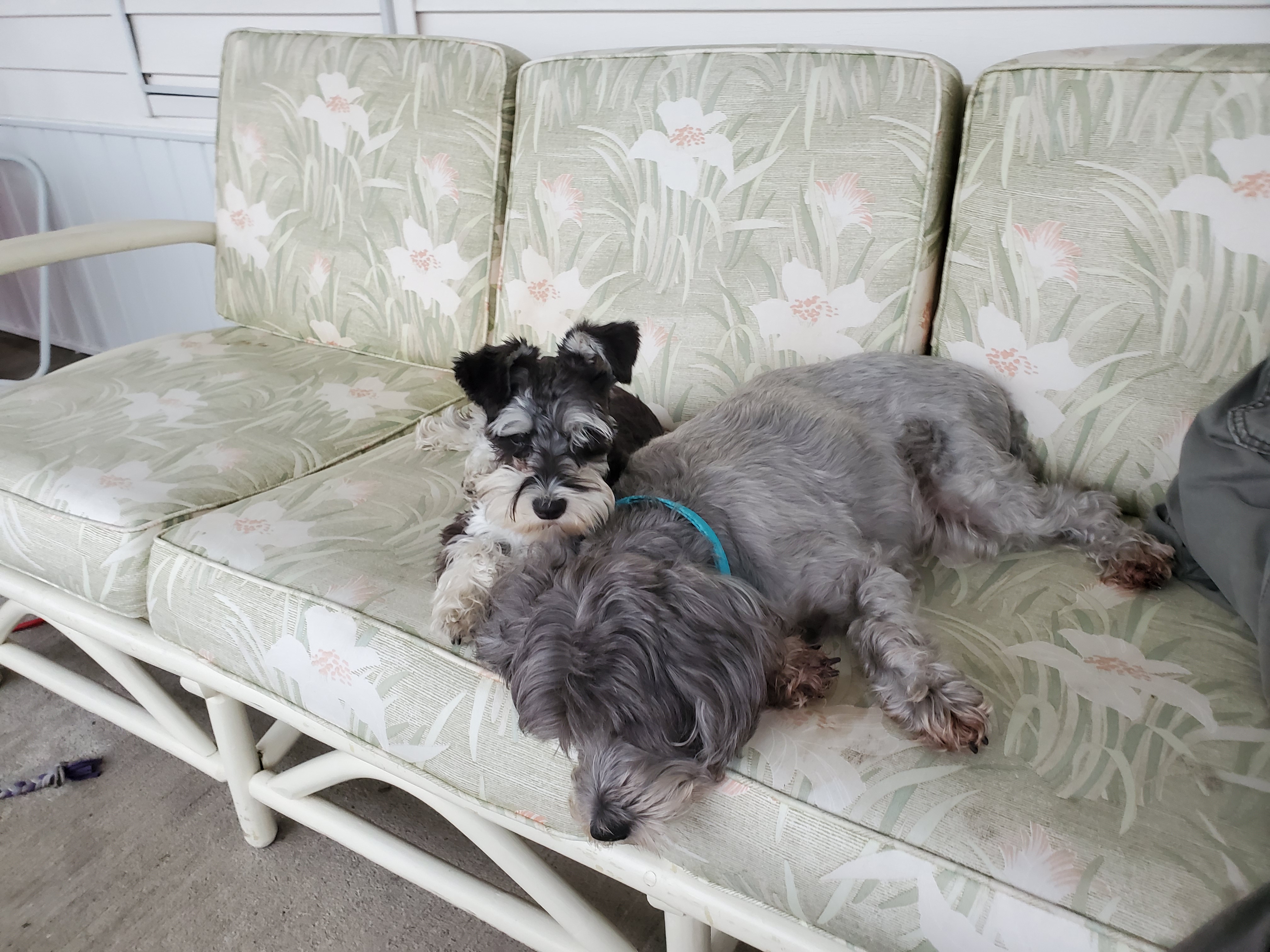 Good looking pups. Are they related? My little guys Dad won a whole bunch of kennel club awards but mine is just a family member. Never understood the dog show stuff. Mine likes the smell of my stripping shoes.
